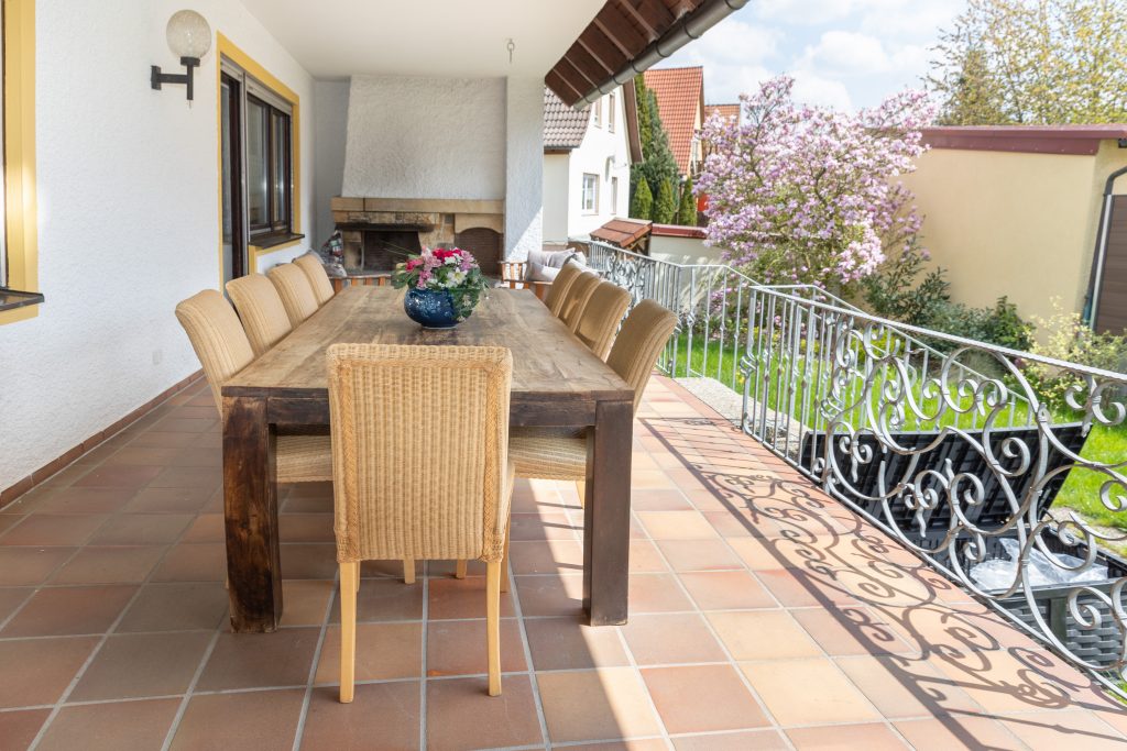 Das Ferienhaus bietet Ihnen eine große überdachte Terrasse. Genießen sie hier ein gemeinsames Essen und entspannen Sie bei einem Aperitif. Sie haben die Möglichkeit gemeinsam zu Grillen oder auch am Kamin zu sitzen und zu entspannen.